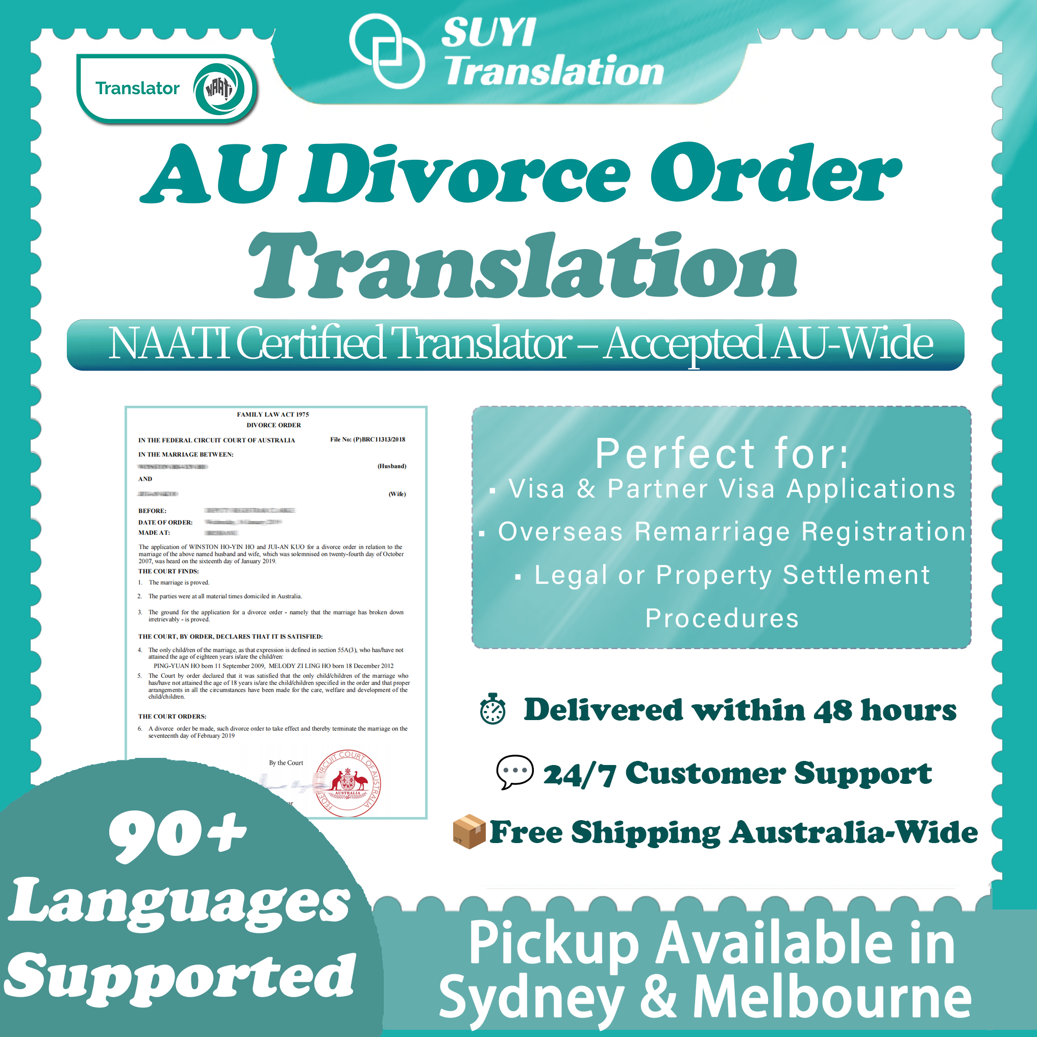 Are you making a visa application, planning to remarry, or issuing legal proceedings? If so, you may need your divorce certificate translated. Our NAATI translators are professional, native speakers, and we can send you a translation of your divorce certificate translated from any foreign language, to meet whatever timescale you need.