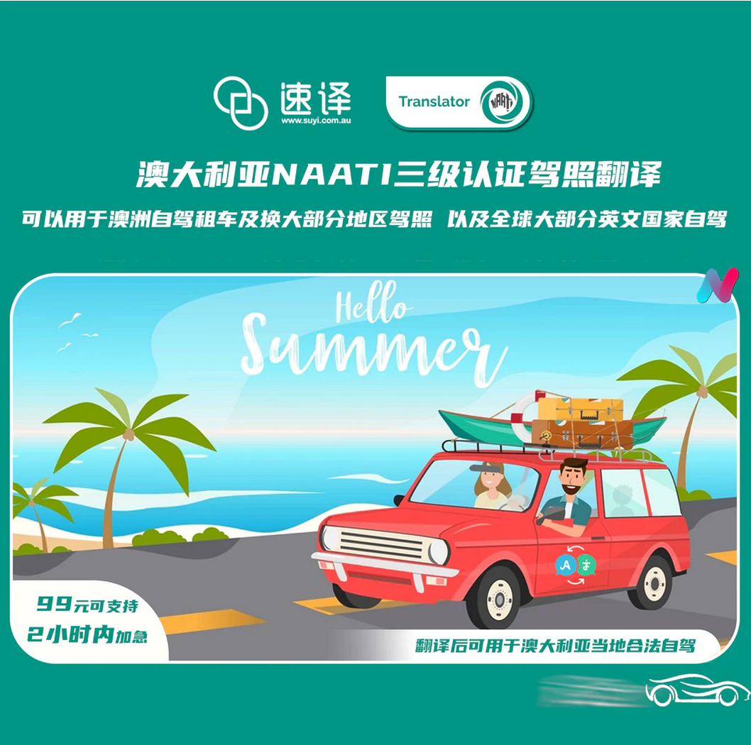 澳大利亚其他州可用速译澳洲NAATI认证翻译驾照自驾并换取当地驾照