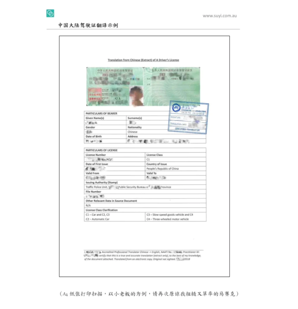 我们默认翻译好后给您电子扫描件,您彩色打印出来即可在澳洲合法自驾。