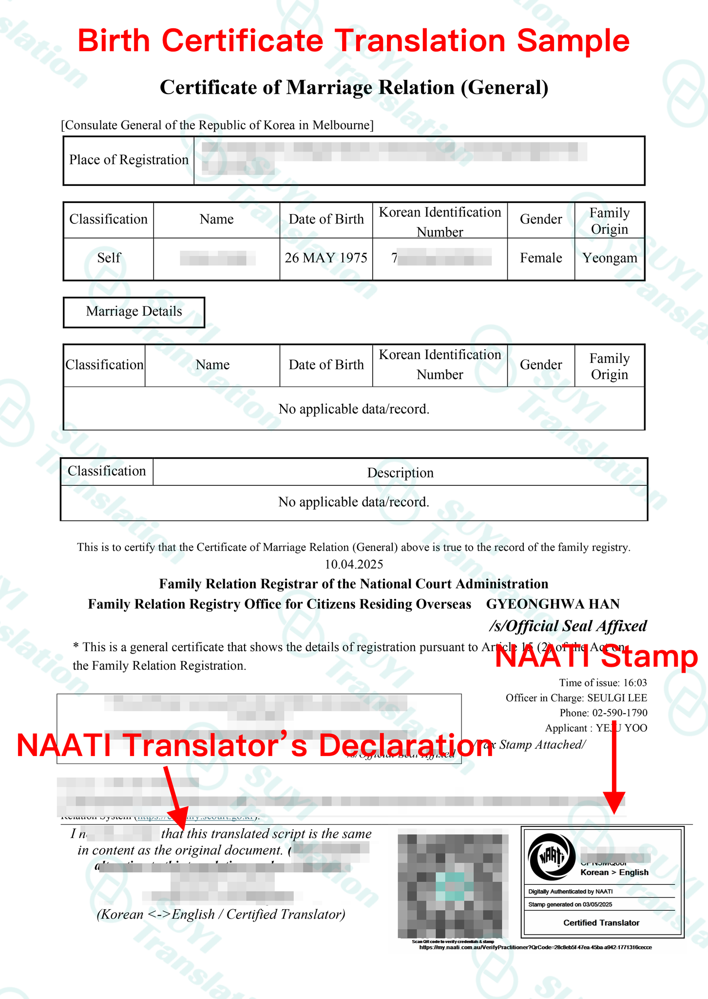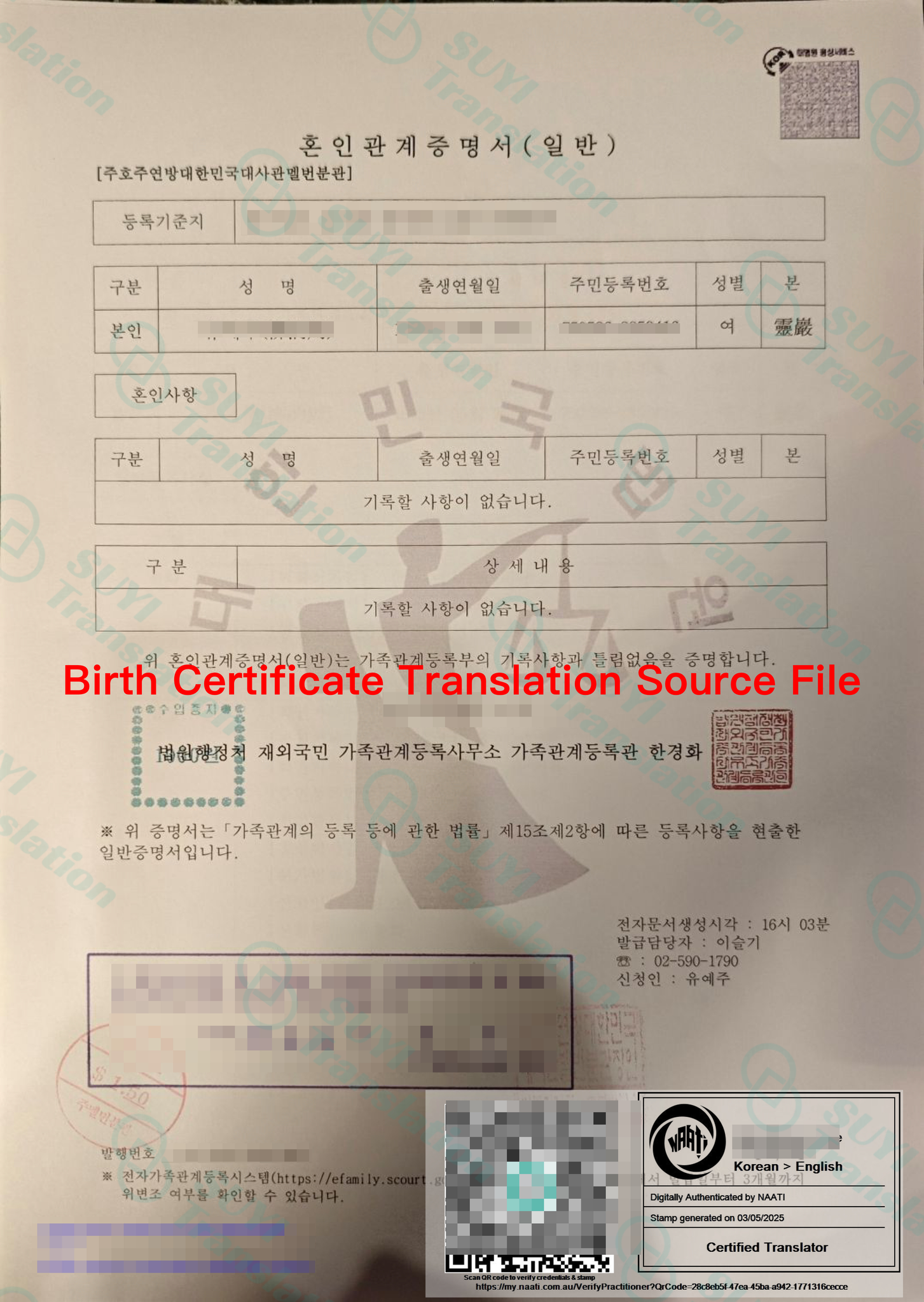Suyi Translation์ NAATI ๊ณต์ธ ๋ฒ์ญ์ฌ๊ฐ ์ง์ ๋ฒ์ญํ ๊ณ ํ์ง ํ๊ตญ์ด ๋ฒ์ญ ์๋น์ค๋ฅผ ์ ๊ณตํฉ๋๋ค.