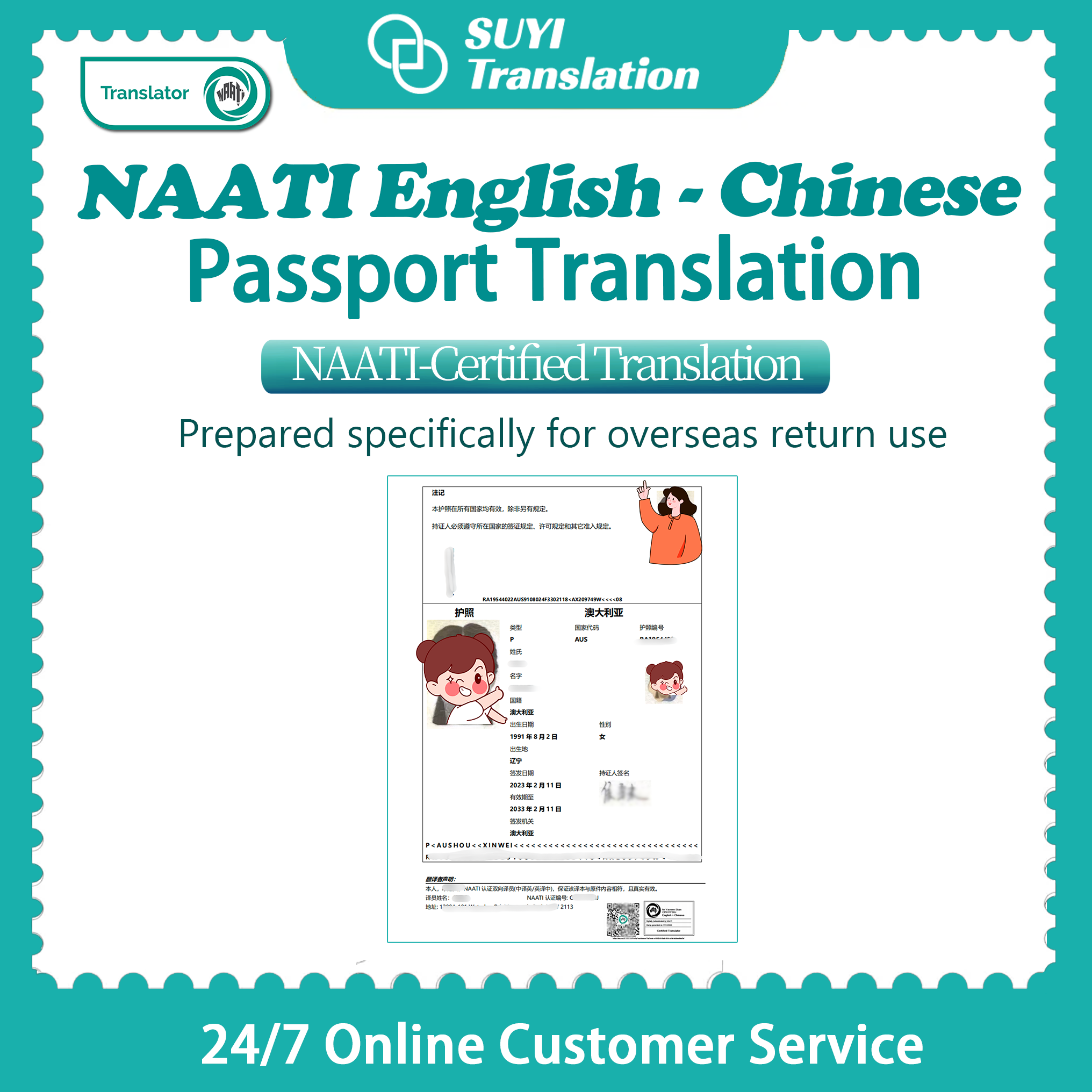 Our NAATI-certified English–Chinese passport translation is provided by accredited Australian translators and meets official requirements for government, visa, and legal use.