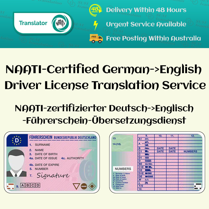Wir bieten Ihnen alle Informationen, die Sie benötigen, um Ihren deutschen Führerschein ins Englische übersetzen zu lassen. Bei Suyi Translation sind wir darauf spezialisiert, Personen aus Deutschland zu unterstützen, die entweder eine Reise nach Australien planen oder sich bereits in Australien befinden und eine NAATI-zertifizierte Übersetzung ihres deutschen Führerscheins ins Englische benötigen.