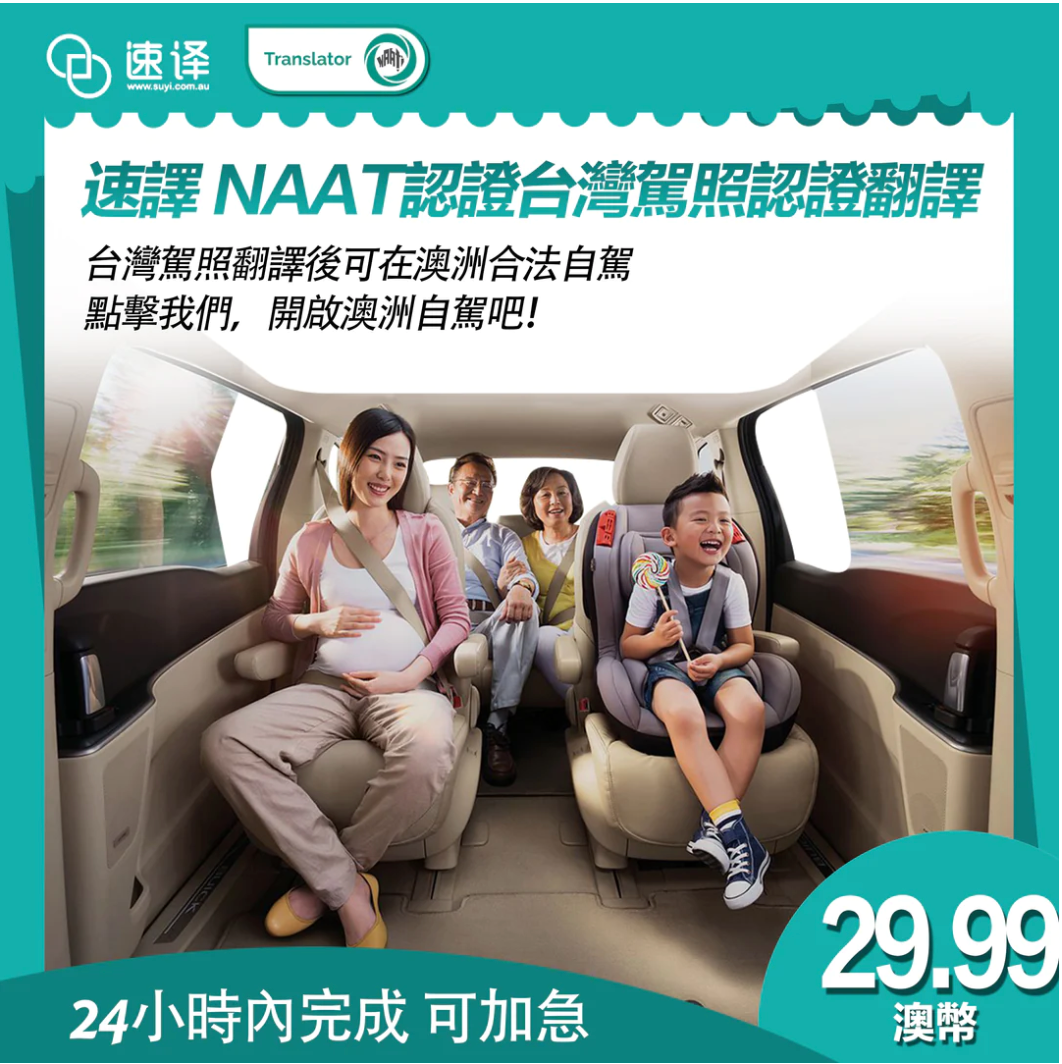 速譯一家澳洲註冊的翻譯公司,經驗豐富,專業從事中英文雙向翻譯服務。 公司具有NAATI 專業級別中英雙向認證,即俗稱NAATI 三級,為移民局指定翻譯機構,多年來和各州政府機構、澳洲多家公司有長期合作關系,為數千名客戶提供專業、高效的翻譯服務,Google Maps 評分4.6分(截止2024年1月31日)。澳洲國家翻譯局(NAATI)認證的中英文翻譯員為您翻譯。駕照翻譯可郵寄到全澳洲各地。多數地方三個工作日內收到紙本。我們的翻譯本可以更換澳洲駕照( NSW雪梨駕照除外).
